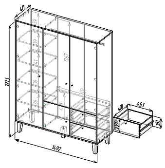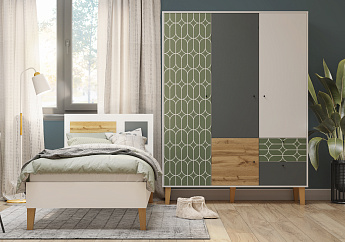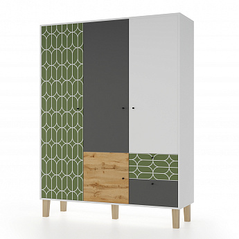 Шкаф распашной трехстворчатый с ящиками «Story» (БлШ, (Ол-Овалы), МАМА