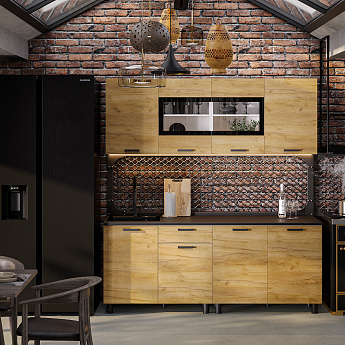 Кухонный гарнитур Абрау (2000) (Белый/Дуб золотой/Чёрный), FI