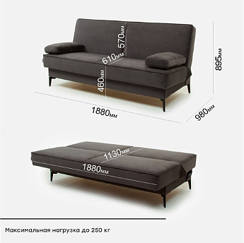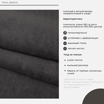 Диван Лайт 2 велюр темно-серый