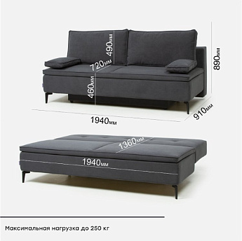 Диван Маркланд велюр темно-серый