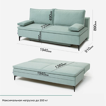 Диван Лестер велюр ментоловый