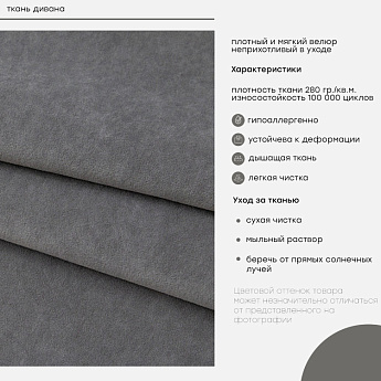 Диван Фишт велюр серый