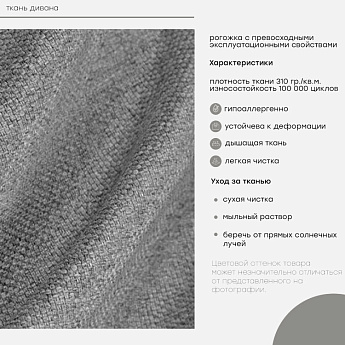 Диван Скандинавия 3 лайт А рогожка серая