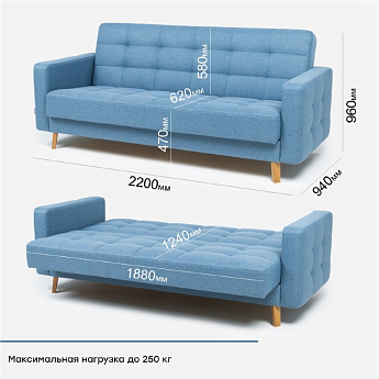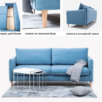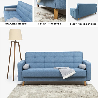 Диван Скандинавия 3 лайт А рогожка синяя