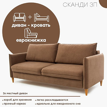Диван Сканди 3П А велюр коричневый