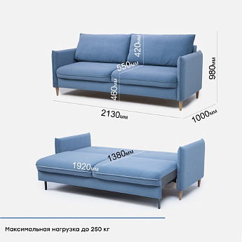 Диван Сканди 3П А велюр голубой