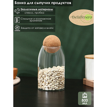 Банка для сыпучих продуктов с пробковой крышкой 800мл