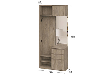 Шкаф Этна 57*100 (Кашемир/Зеркало/Дуб Эндгрейн), Компоновка 17