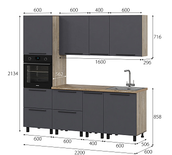 Кухонный гарнитур Этна Софт Графит, FI, Компоновка 2200 1