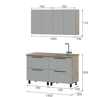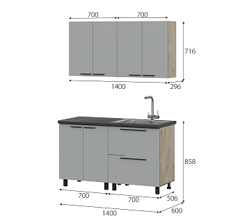 Кухонный гарнитур Этна Софт Грей, FI, Компоновка 1400 1