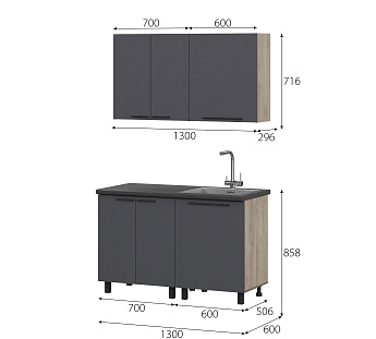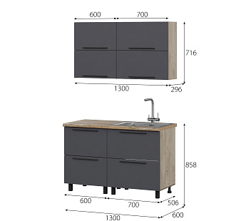 Кухонный гарнитур Этна Софт Графит, FI, Компоновка 1300 1