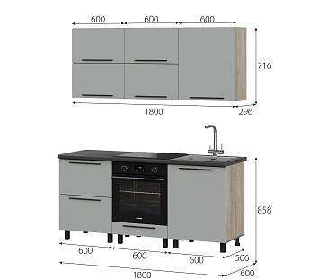 Кухонный гарнитур Этна Софт Грей, FI, Компоновка 1800 3