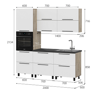 Кухонный гарнитур Этна Софт Вайт, FI, Компоновка 2000 2