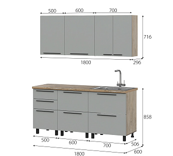 Кухонный гарнитур Этна Софт Грей, FI, Компоновка 1800 1