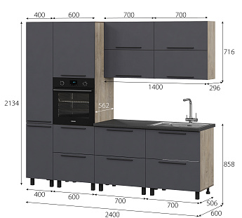 Кухонный гарнитур Этна Софт Графит, FI, Компоновка 2400