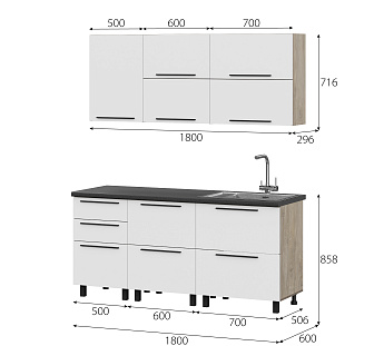 Кухонный гарнитур Этна Софт Вайт, FI, Компоновка 1800 1
