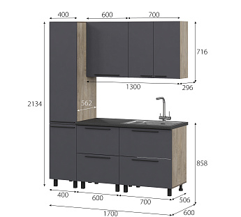 Кухонный гарнитур Этна Софт Графит, FI, Компоновка 1700 1