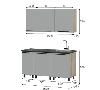 Кухонный гарнитур Этна Софт Грей, FI, Компоновка 1600 1