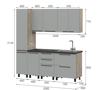 Кухонный гарнитур Этна Софт Грей, FI, Компоновка 2000 5