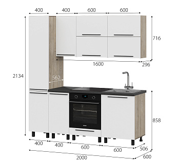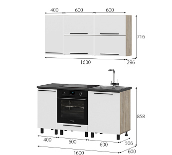 Кухонный гарнитур Этна Софт Вайт, FI, Компоновка 1600 1