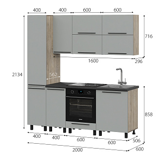 Кухонный гарнитур Этна Софт Грей, FI, Компоновка 2000 2