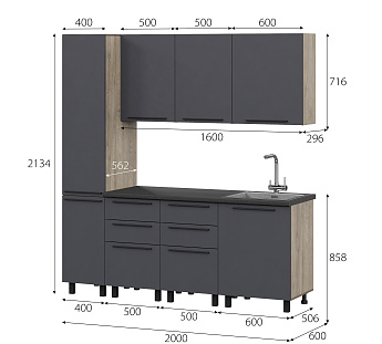 Кухонный гарнитур Этна Софт Графит, FI, Компоновка 2000 1