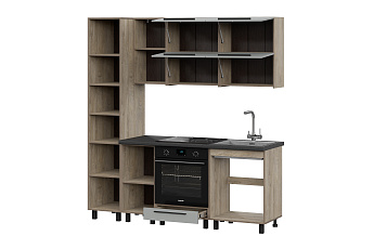 Кухонный гарнитур Этна (Алебастр/Дуб Эндгрейн), FI, Компоновка 1