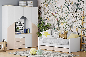 Шкаф комбинированный Банни НМ 041.45 (Белый (КМ)/Дуб сонома/Меренга (ПВХ)/Бисквит), Сильва