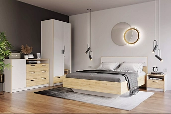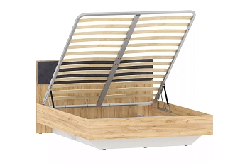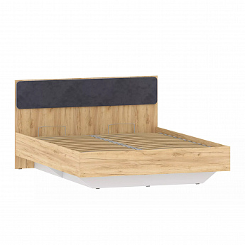Кровать Оттавия НМ 011.56 (Дуб крафт золотой/Белый фасадный/Велюр Ультра Графит), Сильва
