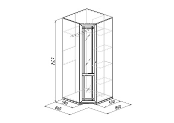 Шкаф угловой Зеркало Sherlock 10 (Ясень Анкор светлый), ГМФ