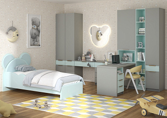 Кровать КР-001 ДЖЕРСИ МИШКА (Шиншила Серая/матовая Скай (GREENWOOD)), Стиль