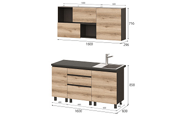Кухонный гарнитур Берген (Дуб делано/Дуб венге), 1600 мм (3)