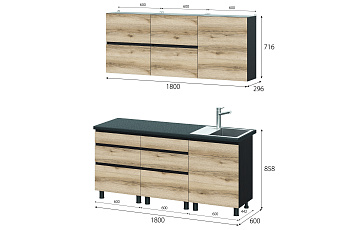 Кухонный гарнитур Берген (Дуб делано/Дуб венге), 1800 мм (1)
