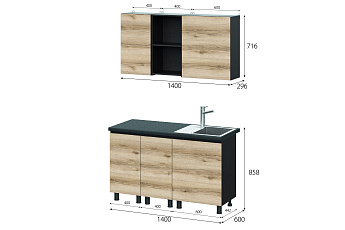 Кухонный гарнитур Берген (Дуб делано/Дуб венге), 1400 мм (1)