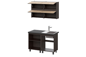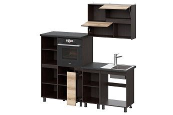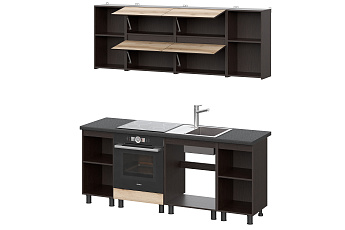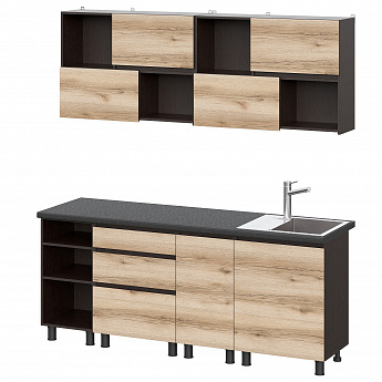 Кухонный гарнитур Берген (2000) с полками Отто (Дуб венге/Дуб Делано/Чёрный), FI