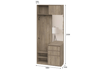 Вешалка с зеркалом Абрау (Дуб Золотой/Белый), FI