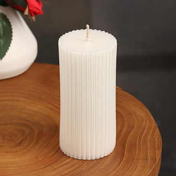 Свеча-цилиндр с гранями, 5х10см, жемчужная