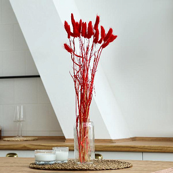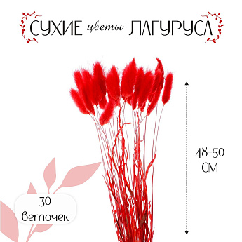 Сухие цветы лагуруса 30шт, цв.красный