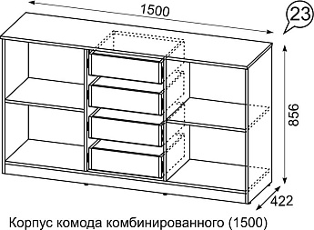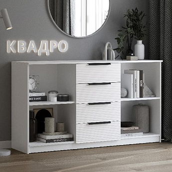 Комод комбинированый Квадро 1500 4ящ. (Белый/Волна (Тальк)), Иж