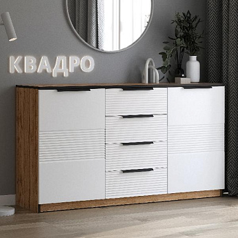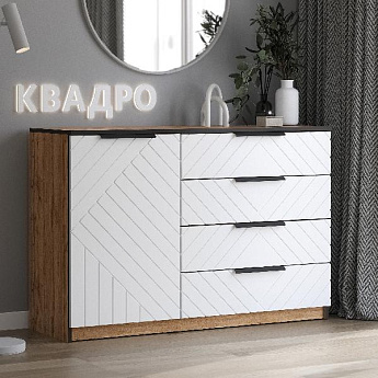 Комод комбинированый Квадро 1500 4ящ2дв. (Дуб Вотан/Волна (Тальк))/Волна (Тальк)), Иж