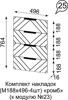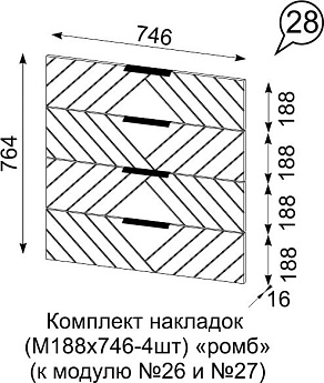 Комод комбинированый Квадро 750 4ящ. (Дуб Вотан/Ромб (Мартини)), Иж