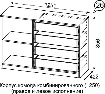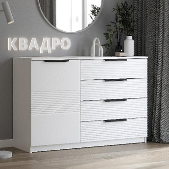 Комод комбинированый Квадро 1250 4ящ.1дв (Белый/Волна (Тальк)/Волна (Тальк)), Иж