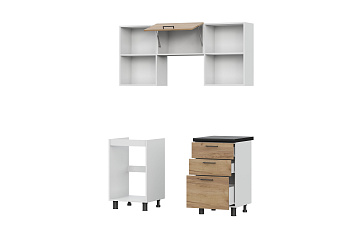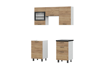 Кухонный гарнитур Аризона (1600) (Белый/Белый/Дуб золотой/Чёрный)