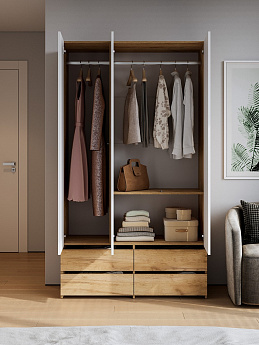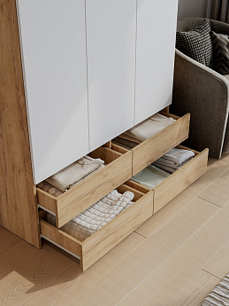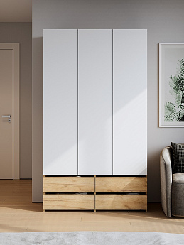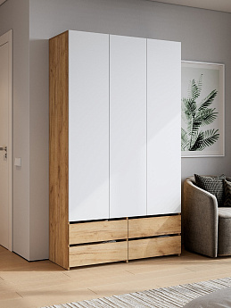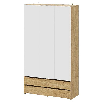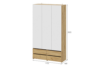 Шкаф трехстворчатый (с ящиками) Абрау (Дуб крафт золотой/Белый), FI