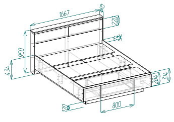 Кровать 1,6 с настилом Элис Мод 37,3 (Дуб Альпийский/Тефия), ALICIA