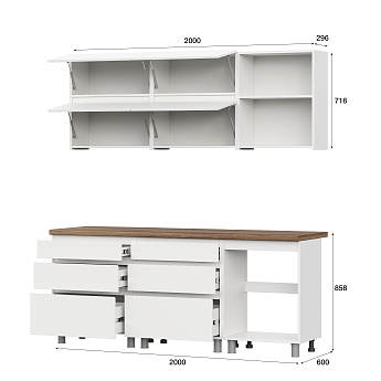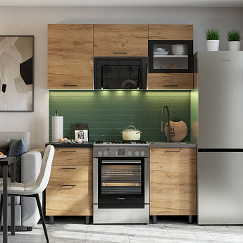 Кухонный гарнитур Абрау (2000) (Белый/Дуб золотой/Чёрный), FI